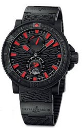 Это мощный, современный и надежный спортивный хронометр, который отражает технологические достижения Ulysse Nardin. Уникальность модели в том, что ее корпус создан из специально обработанной нержавеющей стали, прошедшей сложный процесс вулканизации и покрытой слоем матового черного каучука, который придает часам спортивную эстетику и удобство ношения.