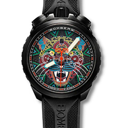 Череп является важным символом для бренда BOMBERG. В латиноамериканской культуре череп всегда ассоциировался с мощью, силой и воинским искусством. Для байкеров череп символизирует единство человечества, вне зависимости от национальности и цвета кожи. В коллекциях BOMBERG символ черепа интерпретируется в различных формах — от растительных мотивов до тату-арта и современной кибер-эстетики. Часы с яркими красками, крупными корпусами и деталями с покрытием superluminova отражают дух независимости и силы.