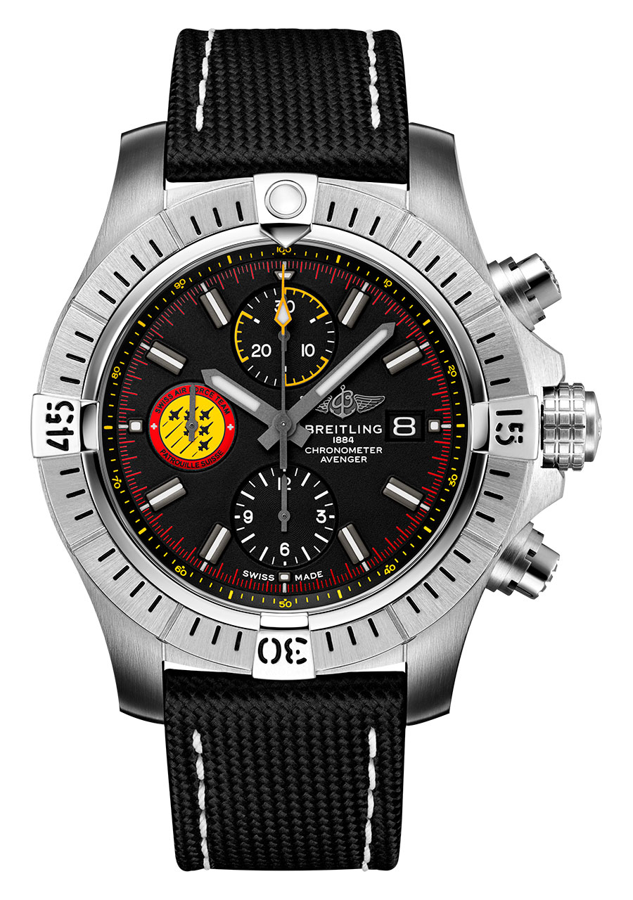 55-летний юбилей пилотажной группы ВВС Швейцарии Patrouille Suisse, известной на весь мир непревзойденным мастерством своих летчиков, вдохновил компанию Breitling на создание новой модели часов – Avenger Swiss Air Force Team Limited Edition. Серия ограничена тиражом 550 экземпляров.