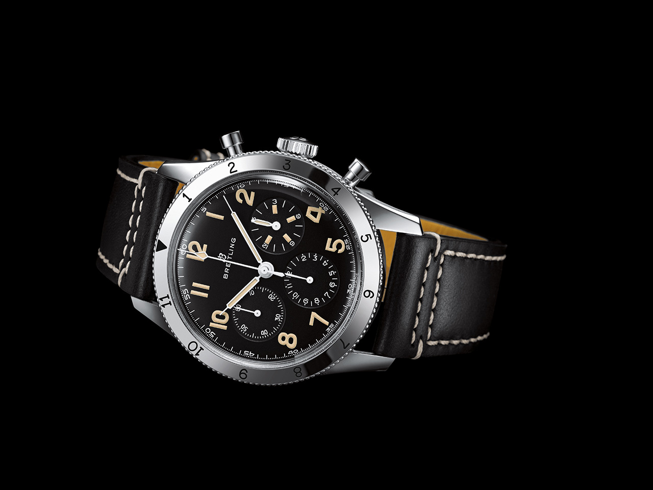 Часы Breitling AVI Ref. 765 1953 Re-Edition доступны с черным кожаным ремешком в винтажном стиле с классической застежкой. Гарантия составляет пять лет.