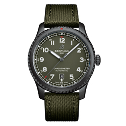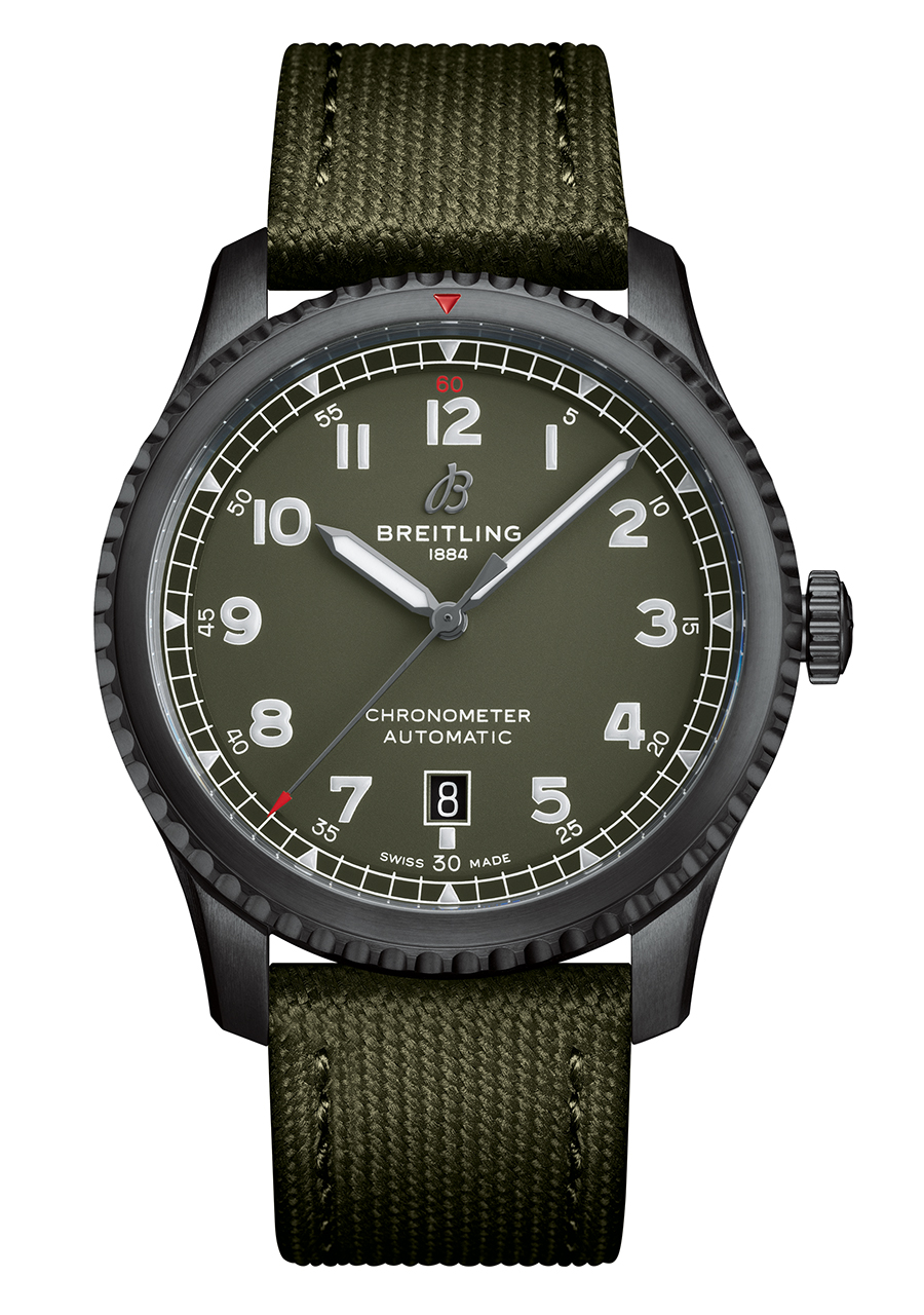 Часы в корпусе из нержавеющей стали с высокопрочным углеродным покрытием DLC оснащены механизмом Breitling Caliber 17, который обеспечивает запас хода около 40 часов и сертифицирован COSC.