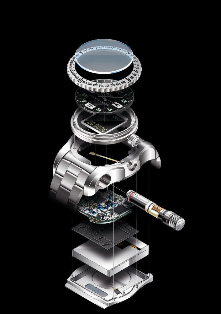 Компания «Breitling» первой в мире создала наручные часы, оснащённые уникальным двухчастотным радиолокационным маяком, тем самым подтвердив свои лидерские позиции в сферах хронометрии и электроники. Можно без преувеличения сказать, что часы «Emergency II» – это настоящее чудо миниатюризации высоких технологий. Этот прибор не имеет равных себе, среди всех передатчиков, относящихся к категории персональных радиолокационных маяков и полностью соответствующих характеристикам системы «Cospas-Sarsat». Emergency II – вершина разработок компании «Breitling», которые длились пять лет, и потребовали нестандартных решений, которые в дальнейшем способствовали развитию микроэлектроники и микротехники.