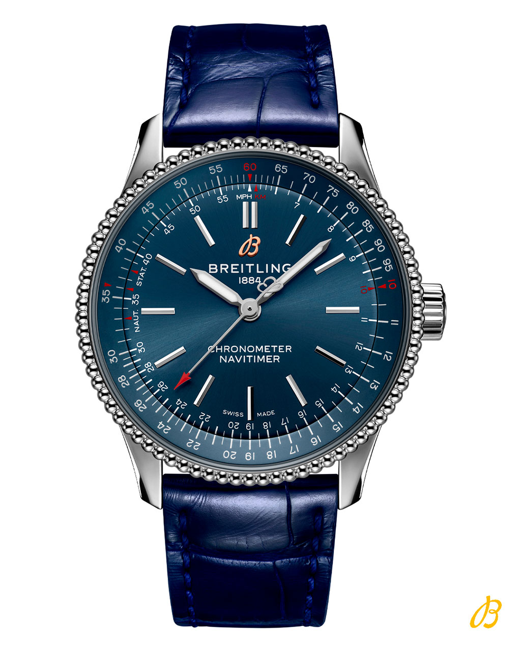 В первом варианте модель обладает 35-миллиметровым корпусом из нержавеющей стали, который может быть дополнен циферблатом синего цвета и синим ремешком, циферблатом медного цвета и коричневым ремешком либо серебристым циферблатом и бордовым ремешком. Ремешок всех трех цветов выполнен из кожи аллигатора и доступен с классической или раскладной застежкой. Кроме того, со всеми версиями модели доступен браслет Navitimer из нержавеющей стали с застежкой.