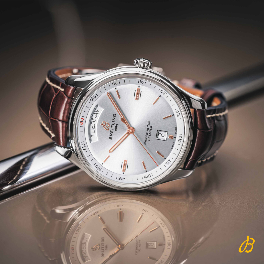 Новая коллекция Breitling Premier наследует не только название, но и дизайнерские идеи часов Premier, производившихся в 40-е годы. Подобно шедеврам кинематографа, увидевшим свет в годы мировой войны и экономической нестабильности, часы отождествляли себя с элегантностью и стилем, которых так не хватало. Эта коллекция посвящена «земной» стихии Breitling. Подобно оригинальной линейке Premier, которую покупатели высоко ценили за ее элегантность, новые часы модельного ряда также являются  олицетворением стиля. В состав коллекции входят хронографы – краеугольный камень репутации бренда в мире, модели с индикацией даты и времени и часы с тремя стрелками с небольшим дополнительным циферблатом.