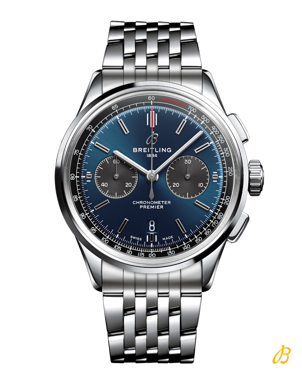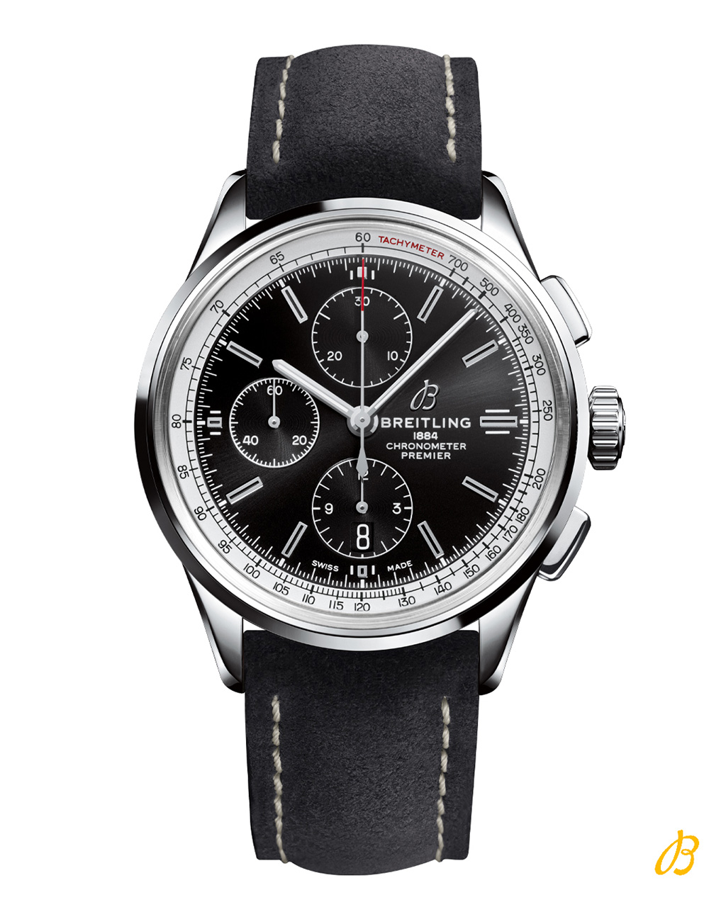 Модели линейки Premier B01 Chronograph 42, оснащенные мануфактурным калибром Breitling Manufacture Caliber 01, являются флагманами новой коллекции. Практика подтвердила, что калибр Breitling Caliber 01, разработанный полностью специалистами компании Breitling, является одним из самых эффективных часовых механизмов в мире. Хронограф с автоподзаводом, сертифицированный Швейцарским институтом официального тестирования хронографов, обладает впечатляющим запасом хода свыше 70 часов. Модель Breitling Premier B01 Chronograph 42 выполнена в прочном корпусе из нержавеющей стали диаметром 42 миллиметра с прозрачной задней крышкой и поставляется в вариантах с синим или серебристым циферблатом. Версия с синим циферблатом предлагает на выбор либо синий ремешок из кожи аллигатора, либо коричневый ремешок из нубука с белой прострочкой, либо с браслетом из нержавеющей стали. Модель с серебристым циферблатом поставляется с черным ремешком из нубука или кожи аллигатора, либо с браслетом из нержавеющей стали.