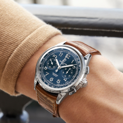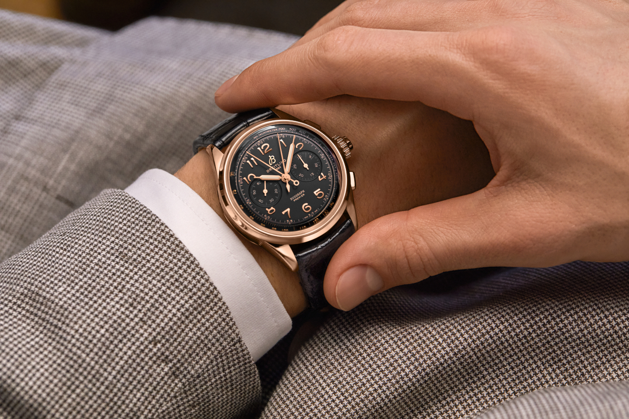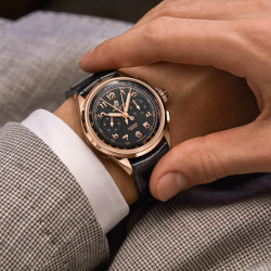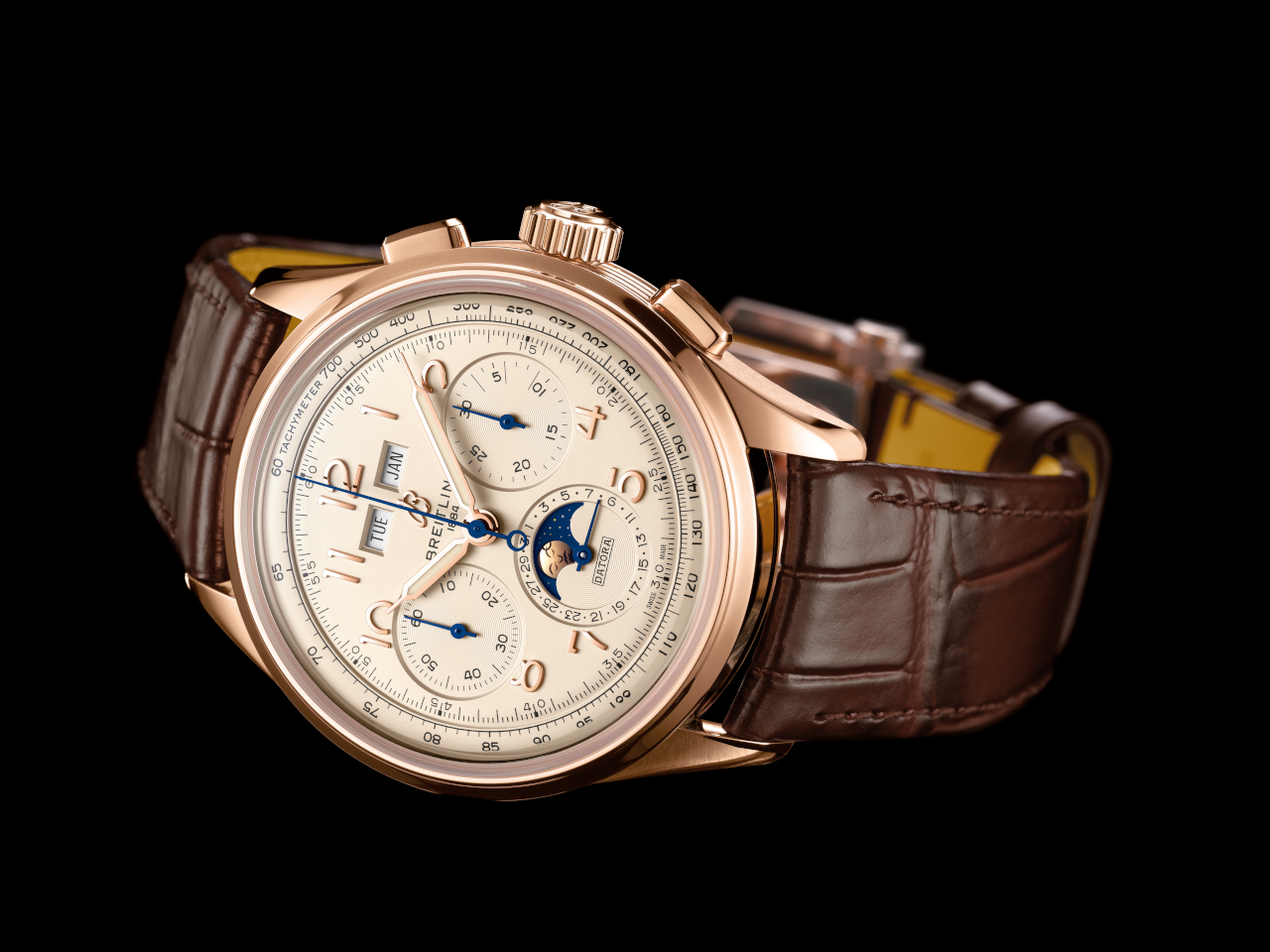 Модель Premier Heritage Duograph выпускается с синим или черным циферблатом в корпусе диаметром 42 мм из нержавеющей стали и 18-каратного красного золота соответственно. Ее функция сплит-хронографа – одна из самых сложных в часовом деле – позволяет владельцу измерять одновременно два отрезка времени с помощью двух центральных стрелок хронографа. Эта модель оснащена мануфактурным калибром Breitling B15 с ручным подзаводом, созданным на основе мануфактурного калибра Breitling B03.