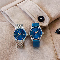 Коричневая модель с акцентами цвета желтого золота дополнена браслетом из нержавеющей стали миланского плетения и темно-коричневым кожаным ремешком. Светло-серая модель DS-1 Powermatic 80 выполнена в лаконичном современном дизайне. Серебристые стрелки и часовые отметки гармонируют с браслетом миланского плетения и серым текстильным ремешком из материала #tide ocean material®. Версия в синем цвете – самая ультрамодная: элементы с напылением из розового золота комбинируются со стальным браслетом из пяти рядов звеньев и синим текстильным ремешком из материала #tide ocean material®. Все три модели оснащены системой быстрой замены ремешка, выпуклым сапфировым стеклом, прозрачной задней крышкой корпуса и, естественно, системой двойной надежности Double Security (DS).