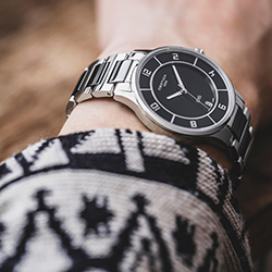 Новые часы DS-6 Lady раскрывают свой потенциал. Главным их элементом является круглый корпус диаметром 35 мм из нержавеющей стали с чередующимися сатинированными и полированными деталями. Его сложная архитектура создает визуальную глубину: возвышающийся безель добавляет дополнительный уровень белому, черному или темно-синему циферблату. Кроме того, безель придает модели новые краски – будь то классический черный, белый или утонченный двуцветный вариант. Шесть арабских цифр, тонкие стрелки и часовые деления, а также дата на отметке «6 часов» дополняют лаконичную элегантность дизайна. Часовая и минутная стрелки покрыты проверенным временем люминесцентным составом Super-LumiNova® для оптимальной считываемости даже в темноте. Браслеты из стали и керамики или ремешки из экологичного материала на основе органического сырья и переработанного ПЭТ легко меняются благодаря системе быстрой замены.