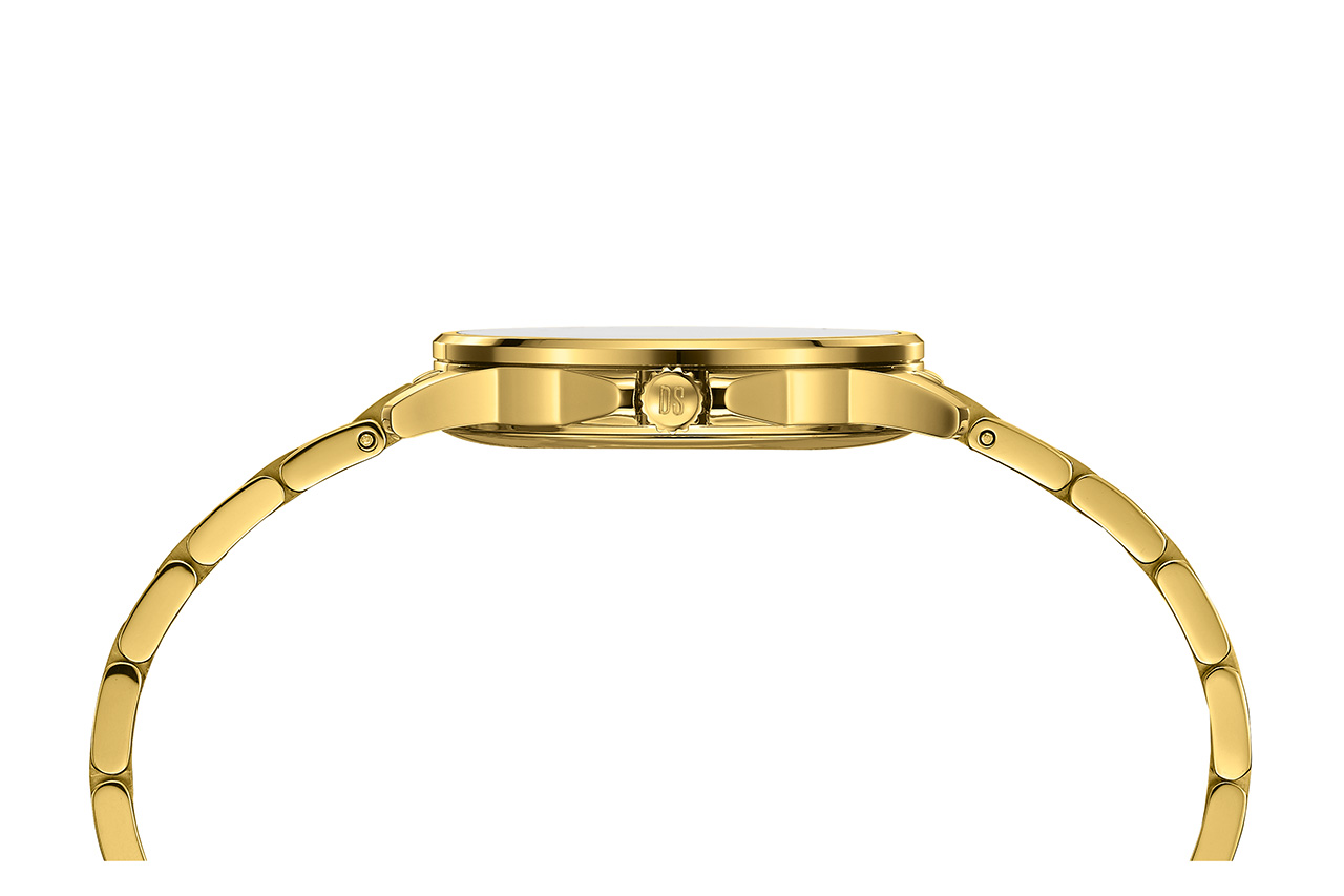 Ваше сердце будет биться чаще в любой день года благодаря классическому элегантному дизайну и теплому оттенку желтого золота модели DS-6 Lady. Корпус диаметром 35 мм из нержавеющей стали с PVD-покрытием с декоративной отделкой в виде сатинирования и полировки идеально располагается на запястье. Широкий безель расширяет белый или золотой циферблат модели. Шесть арабских цифр, утонченные стрелки и индексы, а также дата на отметке «6 часов» дополняют лаконичный дизайн. Часовая и минутная стрелки покрыты качественным люминесцентным составом Super-LumiNova®. Часы комплектуются браслетом из нержавеющей стали с PVD-покрытием. Белые керамические звенья добавляют модные акценты двухцветной версии модели.