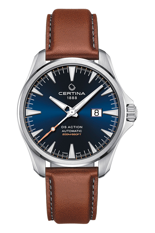 Компания Certina представляет новую модель DS Action Big Date Automatic с впечатляющими возможностями. Среди них эффектное большое окошко даты или часовые отметки и стрелки с покрытием Super-LumiNova, водонепроницаемость до 20 бар, сверхпрочная конструкция.