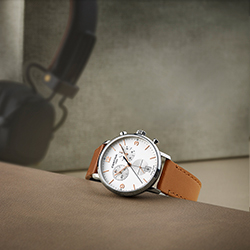 Стильные и функциональные, часы DS Caimano Chronograph впечатляют как внешним обликом, так и внутренним исполнением. Геометрические формы создают четкий, минималистичный дизайн этой модели. Круглый корпус диаметром 42 мм из нержавеющей стали или титана обрамляет синий, черный или белый циферблат с гильоше «Солнечные лучи». Сапфировое стекло с антибликовым покрытием, удлиненные стрелки и тонкие прямоугольные часовые отметки с арабскими цифрами благодаря покрытию Super-LumiNova обеспечивают безупречную считываемость показаний даже в темноте. Часы оснащены металлическим браслетом, гармонирующим с корпусом, или ремешком из телячьей кожи коричневого цвета. Специальная система позволяет быстро и легко менять ремешки.