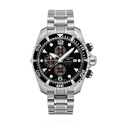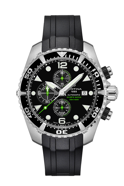 Называться поистине дайверскими часами достойны немногие наручные часы. Хронограф DS Action Diver от CERTINA как раз принадлежит к той когорте, которая заслужила носить это звание. Последняя версия модели полностью соответствует требованиям стандарта ISO 6425. Хронограф отличается яркими цветовыми решениями и может похвастаться водонепроницаемостью до 300 метров. Ультраспортивный дизайн делает его одним из самых известных дайверских хронографов, что достойно истинного потомка знаменитых часов CERTINA DS-3. Выбор в их пользу еще в 1970 году сделали военно-морские силы Австралии.
