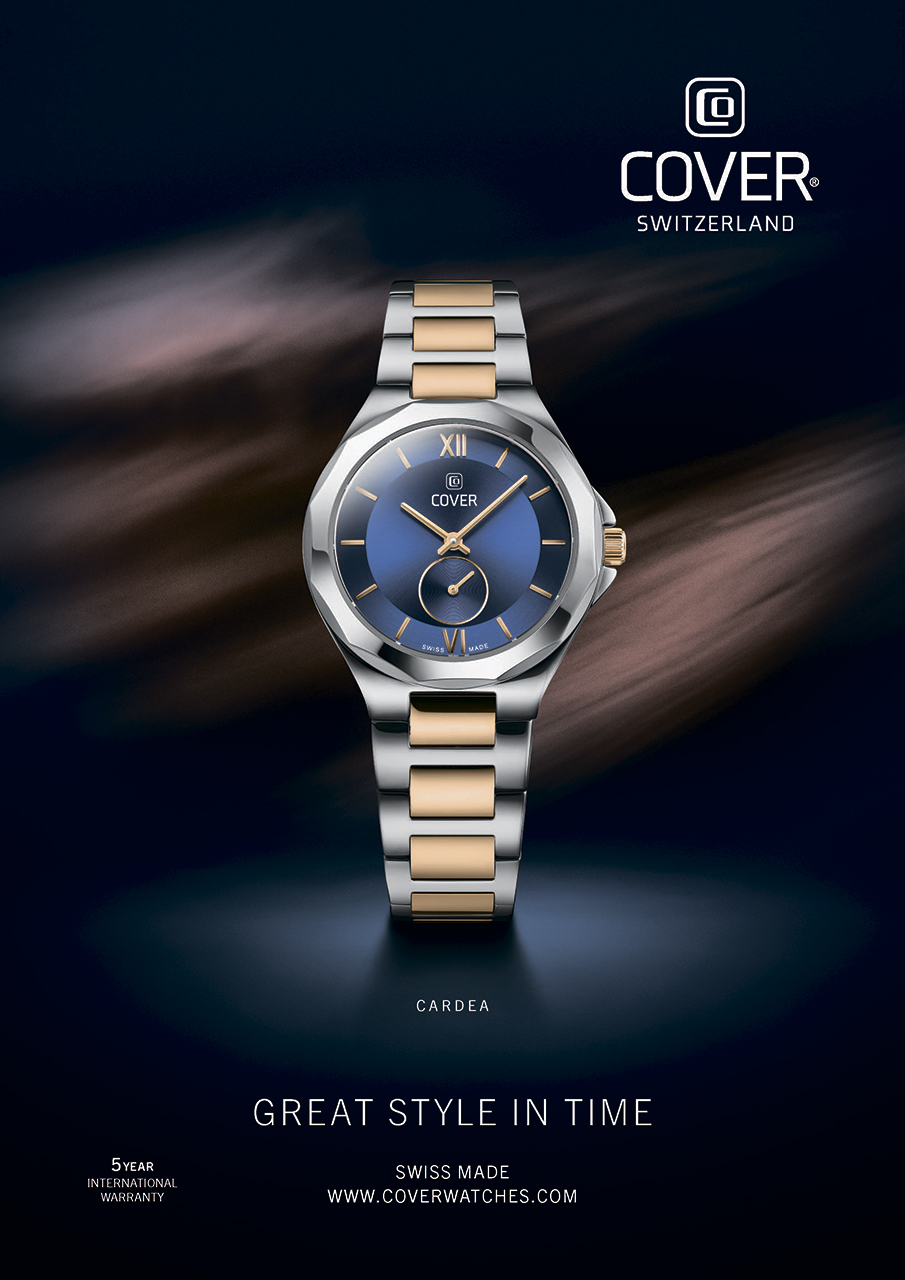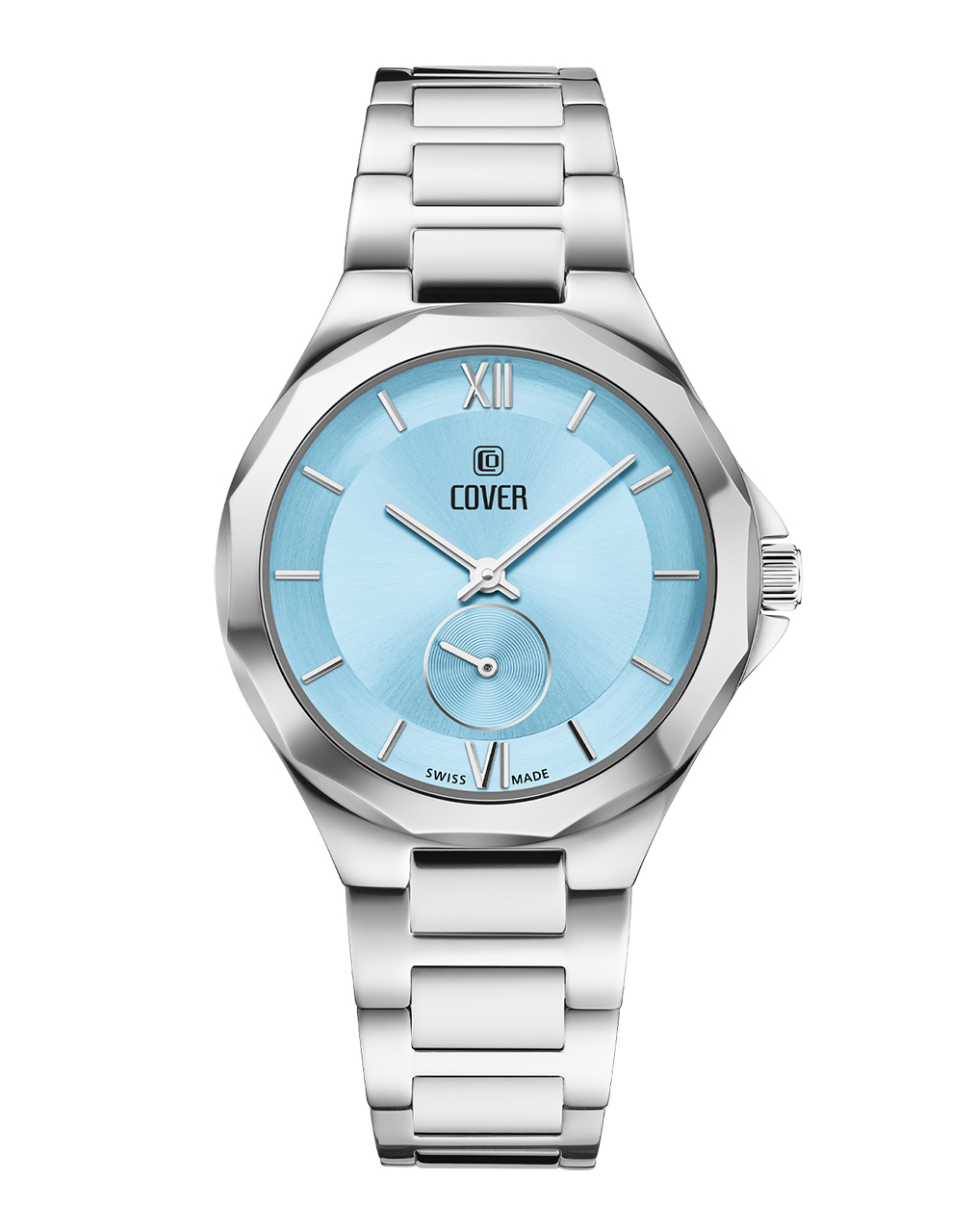 Коллекция Cover CARDEA представляет собой смелое воплощение дизайнерской мысли где утончённая женственность сочетается с индустриальными элементами. Особый акцент добавляет безель, выполненный в форме гайки, придающий модели оригинальность и характер. Циферблат в завораживающем лазурно-голубом цвете украшен спиральной полировкой в области секундного счётчика и индексов, что добавляет глубины и притягивает взгляд.
