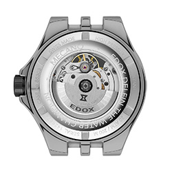 Скелетонизированный дизайн позволяет владельцу мельком увидеть завораживающие, сложные движения автоматического механизма калибра 853. И даже находясь под водой или при слабом освещении, Delfin Mecano обеспечивает кристально четкое отображение времени благодаря покрытию SuperLuminova на стрелках и индексах. 12-гранный безель Delfin Mecano повторяет форму классических моделей Delfin 70-х годов и является напоминанием о том, что хотя Edox постоянно расширяет границы часового дела, она всегда помнит о своем наследии.