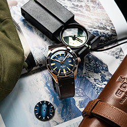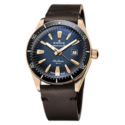 Часы SkyDiver XXI века теперь являются основой семейства часов Edox и сочетают лучшее из обоих миров – классический дизайн с совершенно современным оттенком. Теперь Edox представляет новый SkyDiver с уникальной «изюминкой» – бронзовый корпус с розовым покрытием Bronze Date Automatic. Розовые оттенки бронзового корпуса прекрасно дополняются элегантным шиферно-серо-голубым циферблатом. Часы SkyDiver Bronze Date Automatic излучают классическую атмосферу винтажных часов, но при этом они по-прежнему прочны – прямо как суровый, оригинальный парашютист в военной тематике. Большие индексы и стрелки с покрытием Super-LumiNova напоминают простые для чтения циферблаты военных часов, а внешний керамический безель, устойчивый к царапинам, также является практичным инструментом для дайверов с давлением до 30 АТМ.