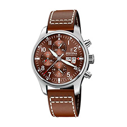Линейка Swiss Made бренда Festina пополнилась механическими часами с автоподзаводом – хронографом F20150. Эти часы выполнены в традиционном дизайне пилотских часов с красной стрелкой.