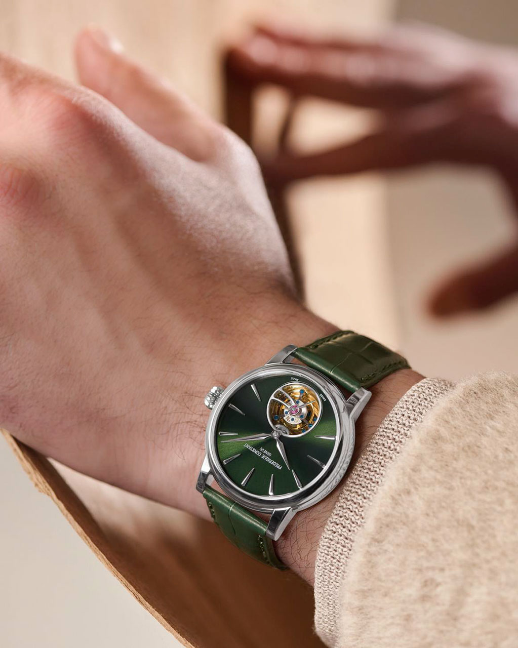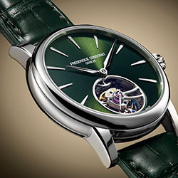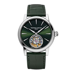 В 2025 году швейцарский бренд Frederique Constant представил лимитированную серию Classic Tourbillon Manufacture FC-980GR3H6 - продолжение знаменитой коллекции турбийонов, сочетающей в себе классику и новаторство часового искусства. Модель создана на базе собственного мануфактурного калибра FC-980, полностью разработанного и собранного специалистами компании. В этом часовом шедевре изысканная элегантность классического корпуса сочетается с выразительным современным акцентом - насыщенным зелёным циферблатом с эффектом солнечного луча.