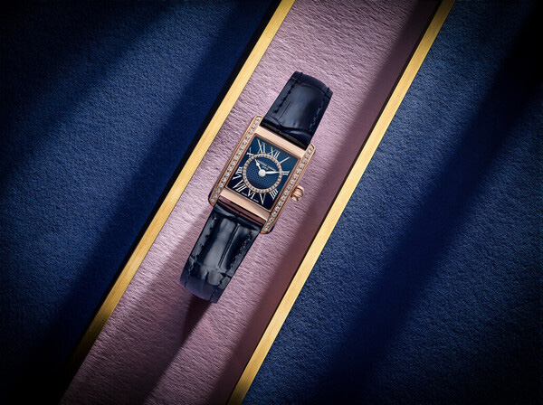 Первая версия предлагает темно-синий циферблат и кожаный ремешок, создавая роскошный образ с бриллиантовой оправой на циферблате и корпусе с розовым золотым покрытием.