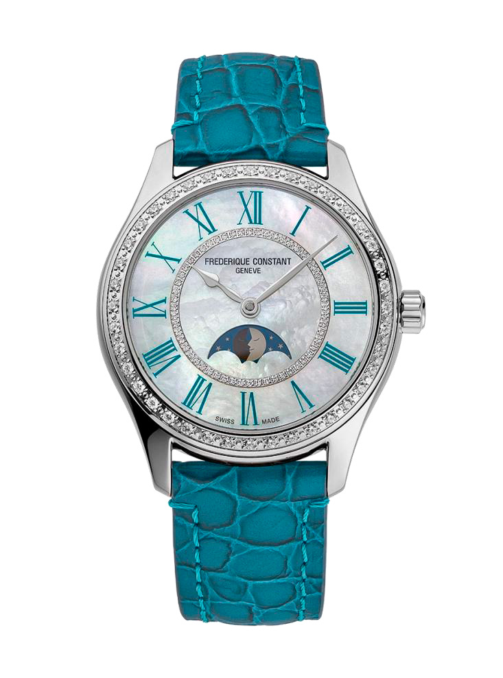 Frederique Constant представляет новую модель в коллекции Classics — Elegance Luna, тонкий и изысканный аксессуар, способный покорять романтическими деталями. Эта модель с уникальной фазой Луны — первая в истории марки, дизайн которой создан дочерью главы отдела исследований и разработок. Ее вдохновение передает романтический характер: на перламутровом циферблате, заключенном в стальной корпус диаметром 36 мм, изображены две половины луны, будто бы соединенные в нежном объятии.