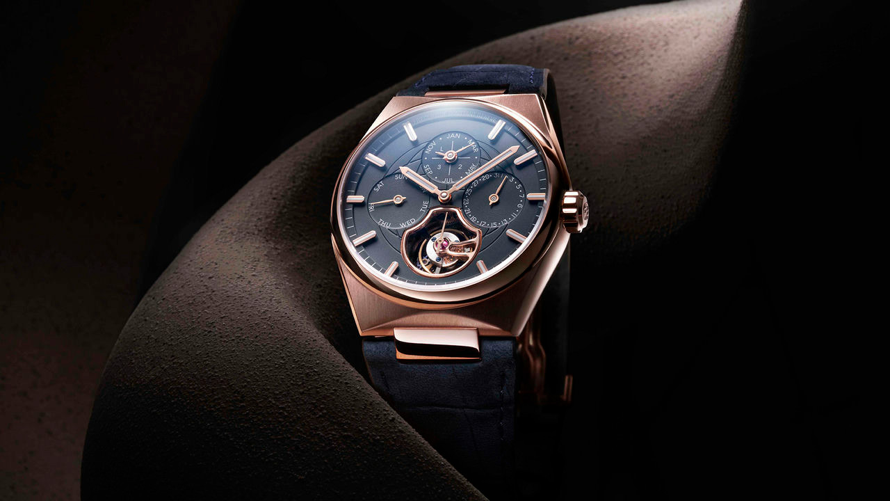 Циферблат часов разработан с учетом максимальной функциональности и считываемости. Отображение дня, числа и месяца на отметках «12-3-9», дополненное стрелкой, а также индикация високосного года и турбийон, демонстрирующий техническое мастерство, делают эту модель часов исключительной как внутри, так и снаружи.