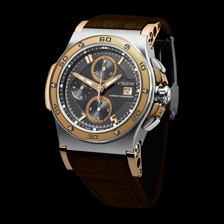 В первой половине этого года марка «Hysek» отпраздновала десять лет со дня начала выпуска авангардной и ставшей за эти годы очень популярной коллекции «Abyss». В честь этого события марка создала серию мужских часов, состоящую из четырёх автоматических хронографов «Abyss 44mm Chronograph 10th Anniversary Titanium and Rose Gold», сочетающих в себе, как это следует из названия, два разных по характеру материала, символизирующих технократизм и роскошь.