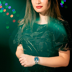 Спокойная сине-стальная палитра делает модель универсальной: она уместна как на деловой встрече, так и на вечернем приеме. Благодаря 34-миллиметровому корпусу и утонченному браслету из стали с застежкой-бабочкой, часы идеально ложатся на запястье и подчеркивают его изящество.