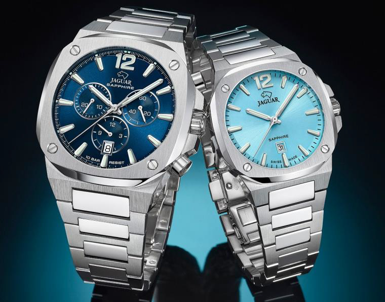 Коллекция Jaguar RC пополнилась стильными моделями, которые идеально смотрятся в паре. Мужская модель J1025/1 и женская J1027/2 — это воплощение повседневной элегантности, объединённой с точностью и узнаваемым дизайном марки Jaguar. Несмотря на различие в размерах, обе версии созданы в едином стиле: корпус в форме подушки, плоский сатинированный безель с декоративными винтами, выразительный циферблат с узором "Sunray" и накладными индексами. В моделях на стрелках и метках используется светонакопительное покрытие, обеспечивающее считываемость в темноте, а классическое расположение апертуры даты на «6 часах» завершает образ.