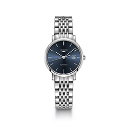 Компания Longines в новой интерпретации коллекции привносит в дизайн часов современные элементы, сохраняя при этом классические черты. Циферблат синего цвета с узором «солнечные лучи» украшен бриллиантовыми индексами. Крепление часов представлено в двух вариантах: ремешком из кожи аллигатора синего цвета или браслетом из нержавеющей стали.