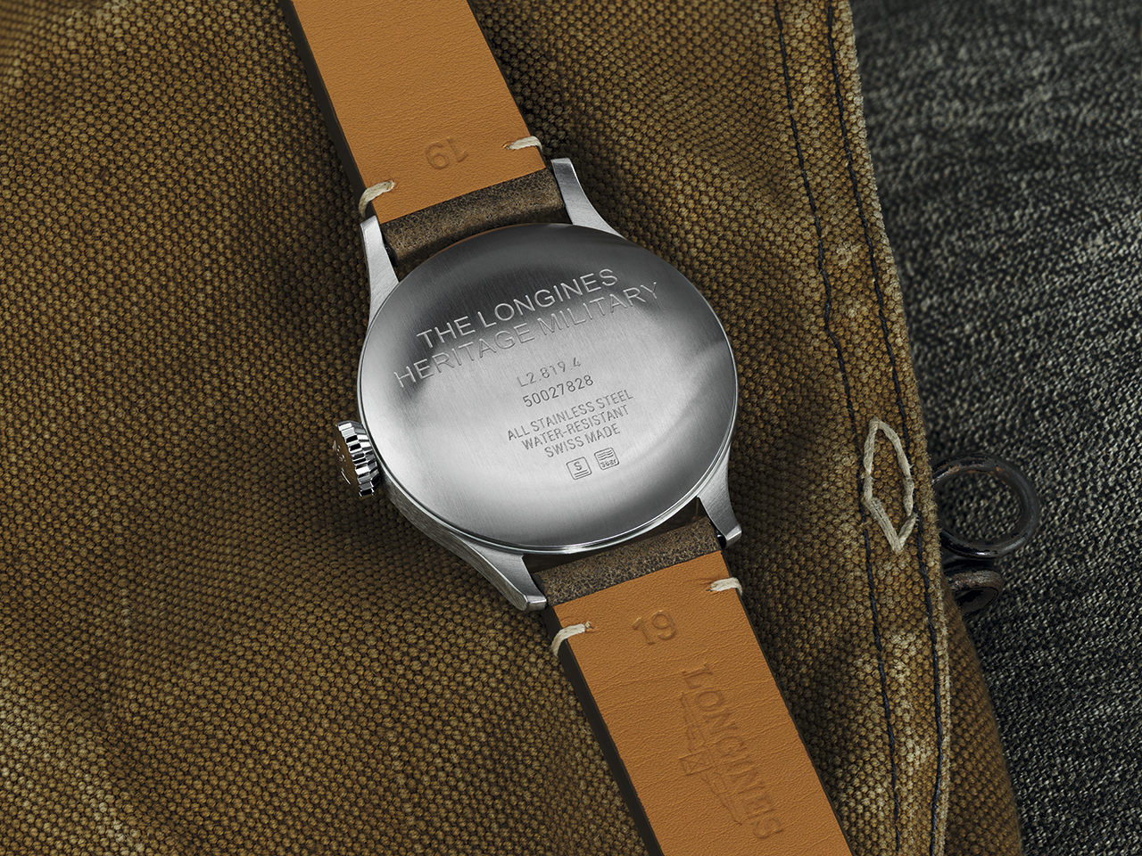 Как и оригинальная модель Longines Heritage Military имеют изогнутый, полностью полированный безель и сапфировое стекло в форме купола. Стальной корпус, в котором заключен автоматический калибр (L888.2), крепится на ремешке из искусственно состаренной кожи зеленого цвета или ремешке НАТО того же оттенка. Обе версии креплений прилагаются к каждому экземпляру вместе с необходимым инструментом для замены, и упакованы в специально предназначенный для этого футляр.