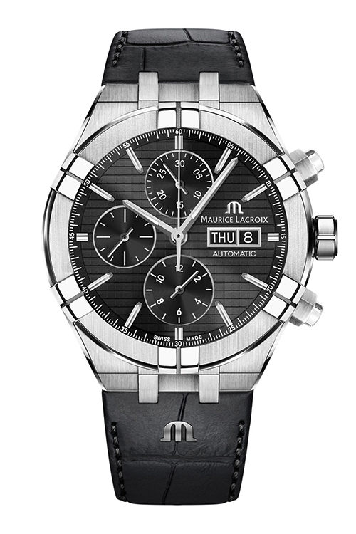 Часам AIKON Automatic трудно остаться незамеченными – каждый элемент от корпуса до браслета привлекает внимание. Благодаря динамичной игре света на гранях, контрасту полированных и сатинированных поверхностей новые модели притягивают взгляды. Все грани матового стального корпуса и шесть выступов безеля, ставшие визитной карточкой коллекции AIKON, идеально отполированы. В хронографе контраст текстур использован в отделке заводной головки и кнопок шестиугольной формы с отточенными гранями. В каждом изгибе этих часов ощущаются сила и энергия, которые определяют ярко выраженный мужской характер и авангардный дизайн – фирменный прием Maurice Lacroix. Часы крепятся на стальной браслет новой конструкции со звеньями в пять рядов. За счет своей гибкости и мягкости он идеально облегает любое запястье.