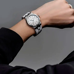 Эта новейшая модель, размещенная в корпусе из нержавеющей стали 35 мм, имеет водонепроницаемость до 100 м, что делает ее идеальной для отдыха у бассейна. Когда садится солнце и танцпол манит к себе, эти универсальные часы сверкают своими индексами, инкрустированными бриллиантами, а люминесцентные стрелки излучают яркое свечение. Центральная секундная стрелка и отверстие для даты в положении «3 часа» дополняют перечень функций. Часы доступны на выбор с пятирядным браслетом из нержавеющей стали или с белым каучуковым ремешком марки M. В отличие от других моделей AIKON часы оснащены простой системой замены ремешка, позволяющей владельцу заменить ремешок на другой без использования инструментов.