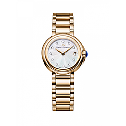 5. Модель FA1004-PVP06-170-1: стальной корпус, диаметром 32 мм, с PVD-покрытием розовым золотом, серебристый циферблат с одиннадцатью бриллиантами и тремя позолоченными стрелками; стальной браслет с PVD-покрытием розовым золотом.