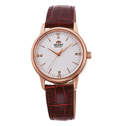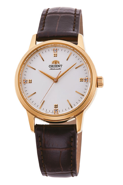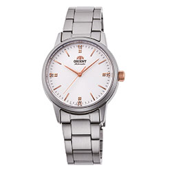 Orient Ladies Contemporary 3-Hands – лаконичные трехстрелочные механические женские часы, составляющие пару мужской коллекции ORIENT Stylish Contemporary. Стильный и аккуратный дизайн часов подчеркнут небольшим корпусом – всего 32 мм в диаметре, который подходит к любому случаю. Индексы в позициях 3, 6, 9 и 12 часов инкрустированы горным хрусталем. Часы оснащены механическим калибром с автоматическим и ручным заводом, за работой которого можно наблюдать через прозрачную заднюю крышку. Водостойкость составляет 10 бар.