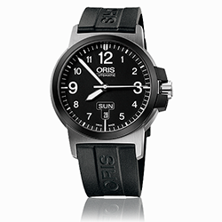 6. Oris Aviation BC 3 Advanced Day Date 01 735 7641 4164-07 4 22 05 Многокомпонентный корпус из матовой нержавеющей стали. Насыщенно-чёрный циферблат с арабскими цифрами одинаковой величины, условными часовыми индексами и стрелками, покрытыми люминесцентным составом «Superluminova BG W9» белого цвета. Чёрный каучуковый ремешок с застёжкой из матовой нержавеющей стали. |