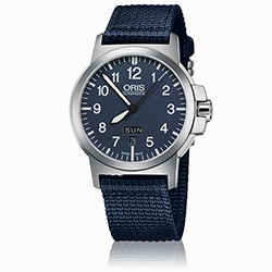 8. Oris Aviation BC 3 Advanced Day Date 01 735 7641 4165-07 5 22 26 Многокомпонентный корпус из матовой нержавеющей стали. Синий циферблат с арабскими цифрами одинаковой величины, условными часовыми индексами и стрелками, покрытыми люминесцентным составом «Superluminova BG W9» белого цвета. Синий текстильный ремешок с застёжкой из матовой нержавеющей стали. |