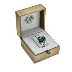 Символическое значение также имеет медальон на задней крышке часов, изготовленный из переработанного полиэтилентерефталата. Каждый из 2000 экземпляров часов предлагается в специальных шкатулках, выполненных из водорослей с вставками из переработанного пластика.
