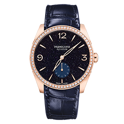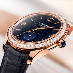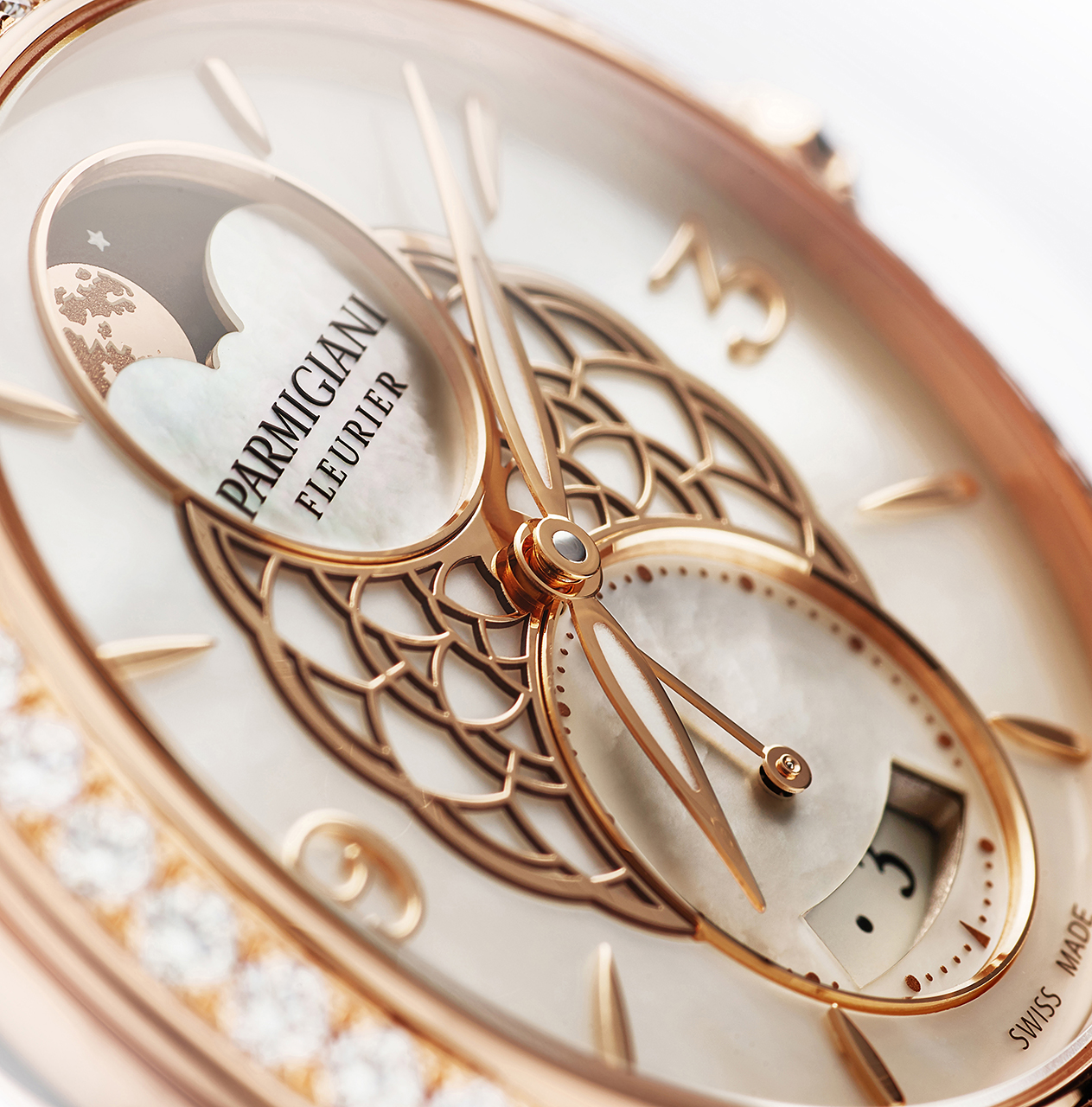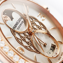 Начиная с выбора самых изысканных материалов и заканчивая тщательным изготовлением всех часовых деталей — каждому этапу разработки коллекции уделено самое пристальное внимание. Подчеркнутая бриллиантами различных размеров игра света, звездный блеск авантюрина или изящно закрепленное золотое кружево на перламутре — все продумано так, чтобы в любой момент времени каждый из этих уникальных часовых спектаклей удивлял своей красотой. Причем эту тонкую поэзию на всех представленных циферблатах может органично дополнить указатель фазы Луны. Как всегда компания Parmigiani Fleurier демонстрирует не только высочайший уровень часового искусства, но и свое непревзойденное мастерство работы с самыми утонченными природными материалами.