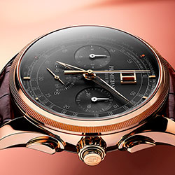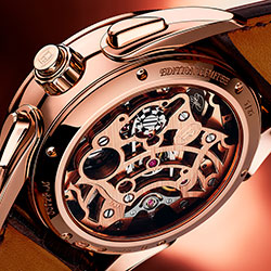 Задумка и разработка этих часов потребовали больших знаний и профессиональных навыков как по части функций, которые необходимо разместить должным образом без ущерба работоспособности, а также по части эстетического исполнения, важного не только для формы, но и для содержимого. Точность в 1/10 секунды и использование пластичного золота для изготовления несущих элементов механизма также относятся к характеристикам, которые по достоинству оценят знатоки часового искусства. Впечатляет и продуманный дизайн. Благодаря ему механизм получился очень надежным и устойчивым к ударам, а также красиво декорированным. Рифленый безель, словно рама, обрамляет пару стрелок на циферблатном «холсте», а завершает роскошную картину ремешок Hermès из кожи аллигатора.