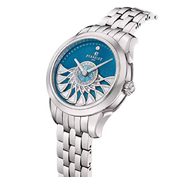 Циферблат из перламутра и 12-часовой маркер в виде одиночного бриллианта создают ювелирное впечатление, а автоматический калибр P-181-H с двойным ротором обеспечивает плавность хода и запас хода 42 часа.