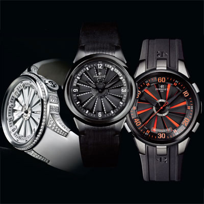 Элегантная женская модель послужила основой для создания фантастической мужской модели часов «Turbine». Эти часы надолго стали своеобразной визитной карточкой бренда. На этот раз уже весь циферблат превратился во вращающуюся карусель с двенадцатью косо заострёнными крыльями, внешне похожими на форму лопастей турбореактивного двигателя самолета. Такая конструкция дала прибавочное ускорение дополнительному сектору, вследствие чего даже от небольшого усилия сектор начинал вращаться с огромной скоростью. Трёхмерный циферблат с «турбиной» постоянного вращения приобрёл неповторимый визуальный объём благодаря контрастной чёрно-оранжевой или чёрно-зеленой гамме, которая подчёркивала наклон лопастей ротора.