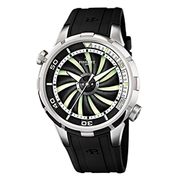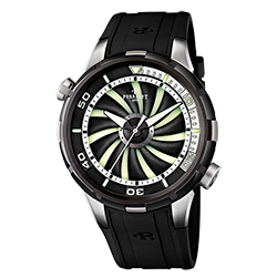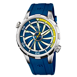Швейцарская компания «Perrelet» на протяжении последних нескольких лет привлекает к себе внимание моделями часов с использованием технологии «Turbine».* Эта технология имеет два ротора, один из которых расположен на циферблате и своим непредсказуемым направлением быстрого вращения создаёт оригинальный визуально-эстетический эффект. Все часы с декоративным аэродинамическим решением «Turbine» входят в одноимённую коллекцию, которая в настоящее время настолько велика и разнообразна, что, в свою очередь, подразделяется на несколько «семейств» или линий. Две из этих линий – «Yacht» & «Diver» специально созданы для любителей и поклонников яхтенного спорта, а также для опытных и начинающих исследователей океанических и морских глубин. Часы «Yacht» & «Diver» пользуются невероятной популярностью, которая стимулирует специалистов Perrelet достаточно часто осуществлять дизайнерские и технические обновления моделей указанных линий.