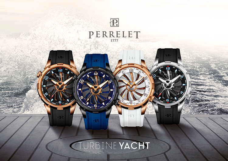 Относительно недавно «семейство» «Yacht» и «семейство «Diver» пополнилось очередными новинками с морским дизайном, отражающим непостижимую красоту водной стихии и обладающими высокими и надёжными функциональными свойствами. Каждая из новинок в образе часов «Perrelet Turbine Yacht» и «Perrelet Turbine Diver» представлена несколькими моделями с весьма заметными отличиями на фоне общих «родственных» черт, к которым можно отнести своеобразную архитектуру корпуса, механизм, наличие каучукового ремешка, а также, безусловно, знаменитую и непредсказуемую по своей динамике титановую турбину с одиннадцатью лопастями.