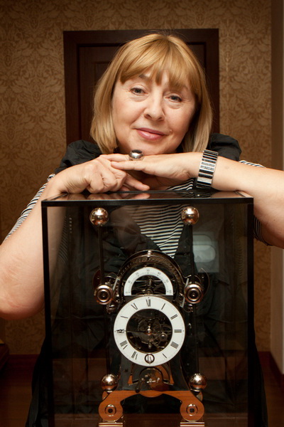 Безошибочным дизайнерским взглядом Ольга сразу увидела, что такие часы не уместны на фоне коричневых обоев, их лучше всего поместить в светлый интерьер - они будут иначе смотреться на фоне белой стены. Вкусу Ольги доверяешь сразу. И дело не только в многолетнем опыте, множестве реализованных проектов европейского уровня для интеллектуальных людей. Она любит и умеет создавать гармоничные ансамбли, как в интерьерах, так и в своем образе. Например, в ходе проекта Ольга раскрылась как ценитель авторских дизайнерских украшений. С собой на съемку она взяла несколько из своей коллекции, чтобы на месте решить, какие украшения подойдут для выбранного образа.
