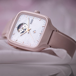 Дизайнерская коллаборация Ash Barty Limited Edition III, представляющая собой адаптацию классического True Square в фирменной высокотехнологичной керамике Rado, знаменует новые, захватывающие времена как для Эш, так и для бренда Rado. Женственные уникальные часы, которые будут радовать их владелицу днем и ночью, помещены в светло-розовый высокотехнологичный керамический квадратный корпус. Белый перламутровый циферблат с нанесенными индексами цвета розового золота придает изделию роскошный вид. А вырез открывает интригующий вид на механику часов, напоминая о тяжелой работе, стоящей за блестящим внешним видом.