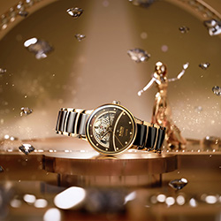 Завершает трио Rado Centrix Open Heart (R30230922) — элегантная модель с акцентом на ювелирный блеск. Корпус и браслет сочетают нержавеющую сталь с PVD-покрытием цвета розового золота и коричневые керамические вставки. Циферблат и корпус украшены 86 бриллиантами плюс ещё 12 бриллиантов служат часовыми метками. Внутри работает автоматический калибр R734 с пружиной Nivachron™ и 80-часовым запасом хода - часы, в которых высокий класс механики сочетается с вечерним, по-настоящему праздничным дизайном.