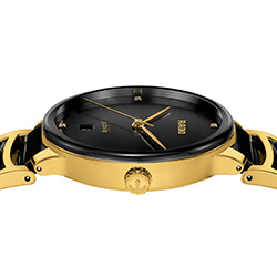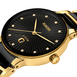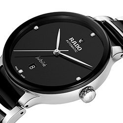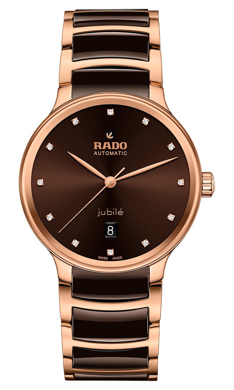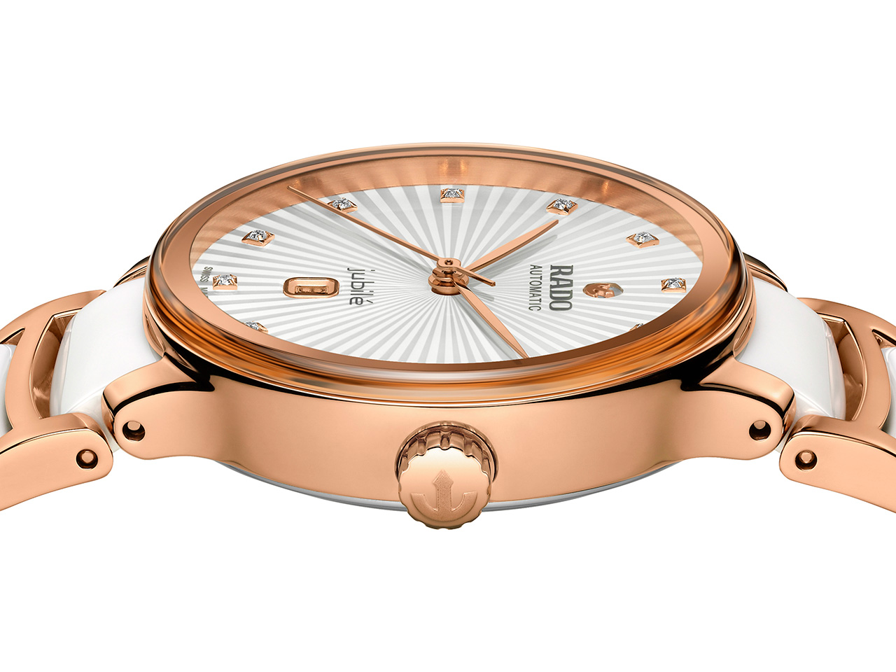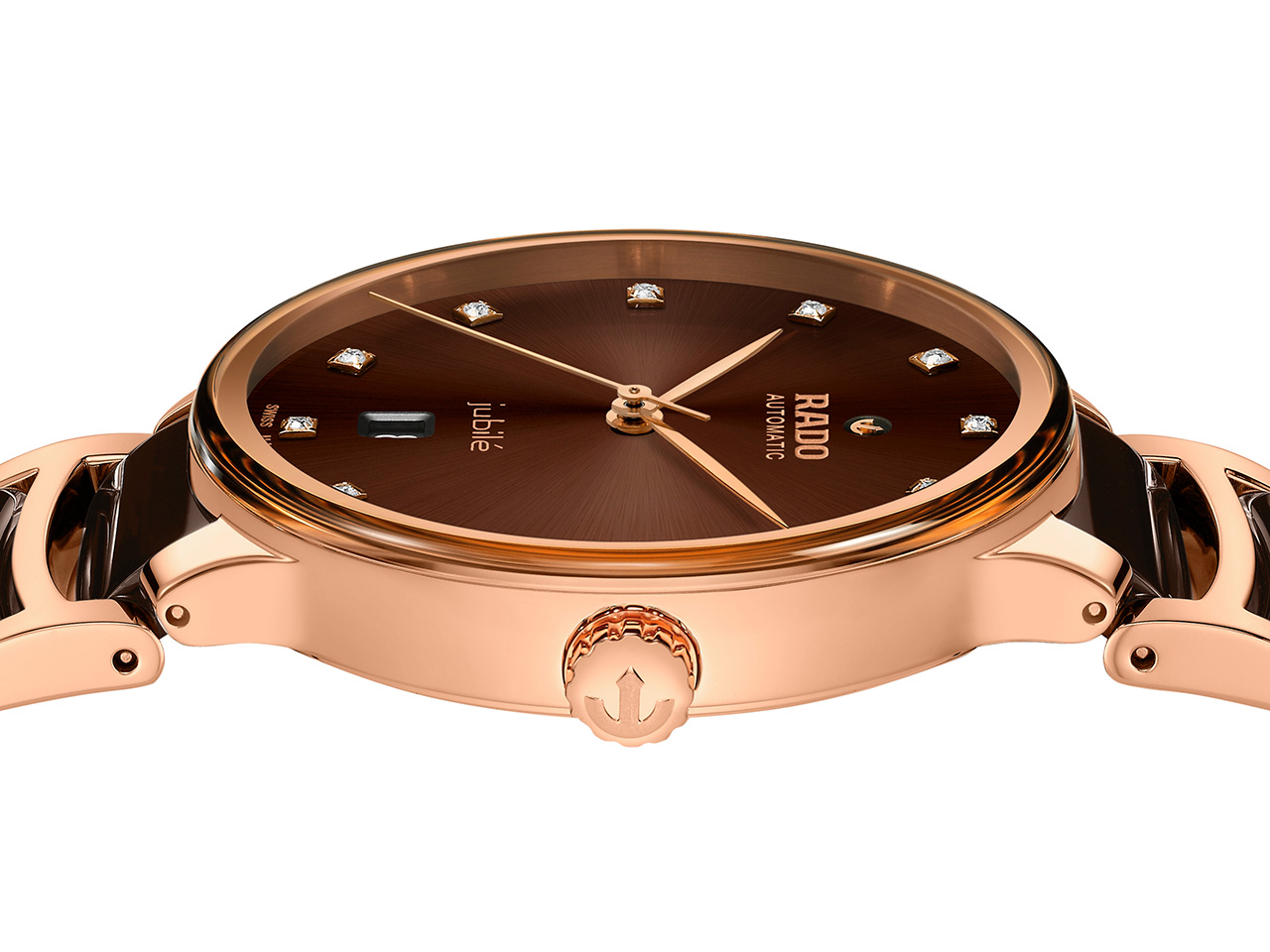 Логотип Rado в новой линейке Centrix больше, чем раньше, а надпись Jubilé возвращается на модели, в индексах которых присутствуют драгоценные камни. В маркировку крепления заводной головки была добавлена улучшенная лазером детализация, чтобы сделать ее более заметной. Вертикальные грани корпуса больше не имеют простой цилиндрической формы, а красиво закруглены, чтобы соответствовать более мягкому дизайну и плавно переходить в переработанную заднюю крышку корпуса с новой геометрией и меньшим количеством маркировок, а также выгравированным лазером серийным номером.