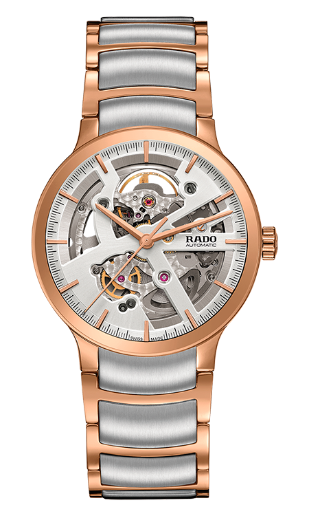 Оригинальная архитектура скелетонированных циферблатов «Rado Centrix Open Heart Lady» и «Rado Centrix Open Heart Gent» имеет существенные отличия. В женских часах скелетонирование осуществлено посредством верхней круглой и нижней полукруглой апертур. В мужских часах пять разных фигурных вырезов, расположенных по всему радиусу циферблата, открывают обзор практически всей передней части часового механизма. Циферблаты часов имеют вариативную расцветку: