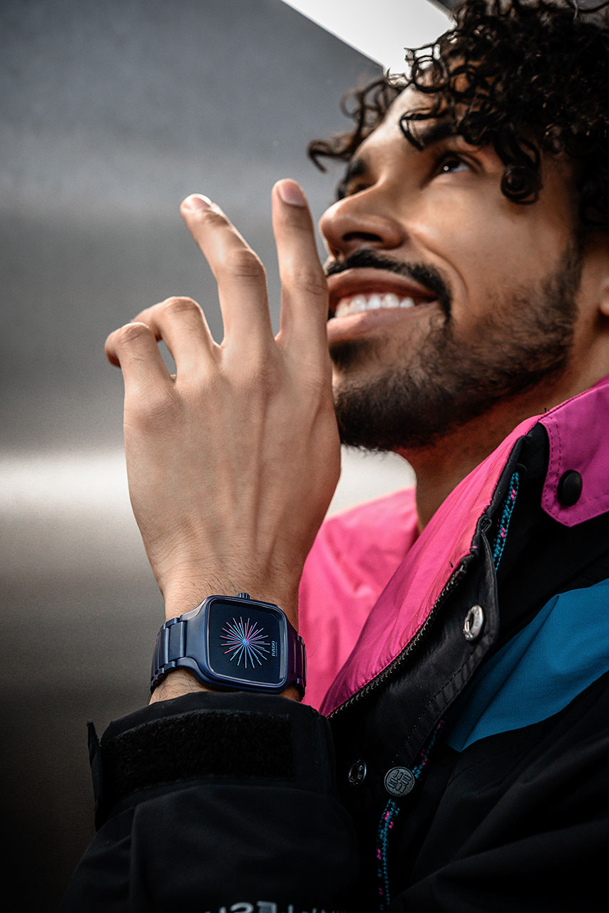 Индийский дуэт обратился к концепции социального дизайна, чтобы вместе с экспертом в материалах создать часы с уникальным отображением времени, которые показывали бы не только местное время владельца часов, но также время в других часовых поясах мира. Эти часовые пояса обозначены при помощи 37 стрелок, окрашенных в цвета, плавно перетекающие из одного в другой — от синего до розового. Это создает эффект сказочного фейерверка в центре циферблата. Два отдельных, но заметных индикатора в виде точек SuperLuminova указывают на местное время.