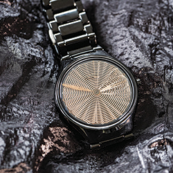 - Задняя крышка корпуса из титана с PVD-покрытием черного цвета и черным металлизированным сапфировым стеклом.