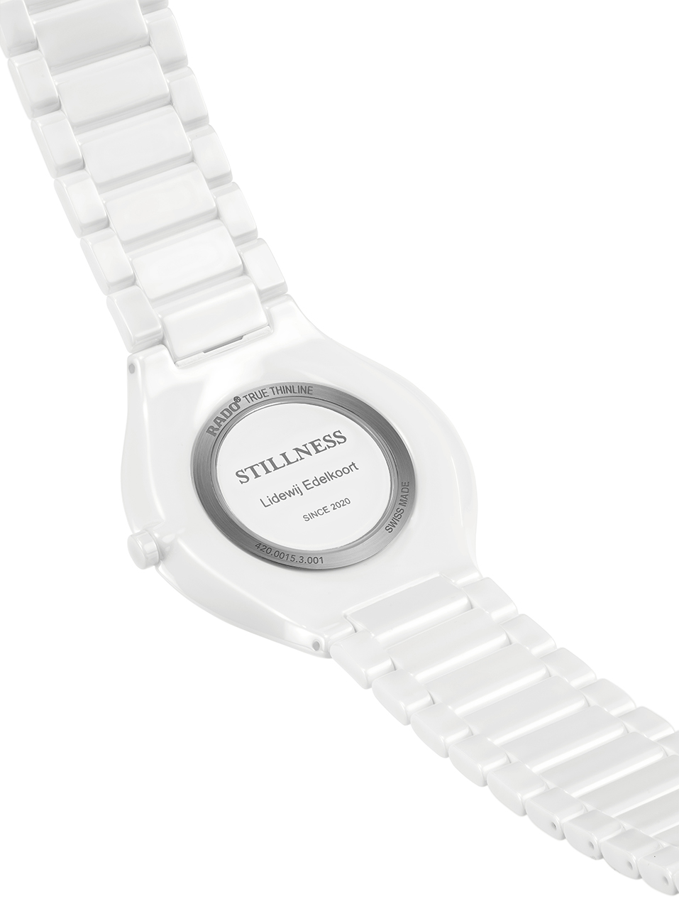 В целом новая модель является современной интерпретацией дизайнерской концепции «меньше — значит больше». Корпус из высокотехнологичной керамики теплого белого цвета имеет толщину 5 мм и диаметр 39 мм, оснащен задней крышкой из титана и сапфирового стекла с надписью «STILLNESS Lidewij Edelkoort SINCE  2020». Циферблат белого цвета виден сквозь выпуклое сапфировое стекло с матовым белым эффектом. Часовая и минутная стрелки белого цвета, прозрачный логотип Rado и браслет из высокотехнологичной керамики белого цвета дополняют монохромный вид этих современных кварцевых часов швейцарского производства.